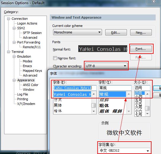 按照图示,设置字体(Font),并将 Character Encoding 设置为 UTF-8。