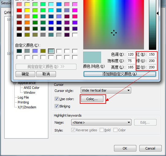 在同一个窗口,设置 ANSI Color;即,按照以下顺序进入 ANSI Color 的设置: